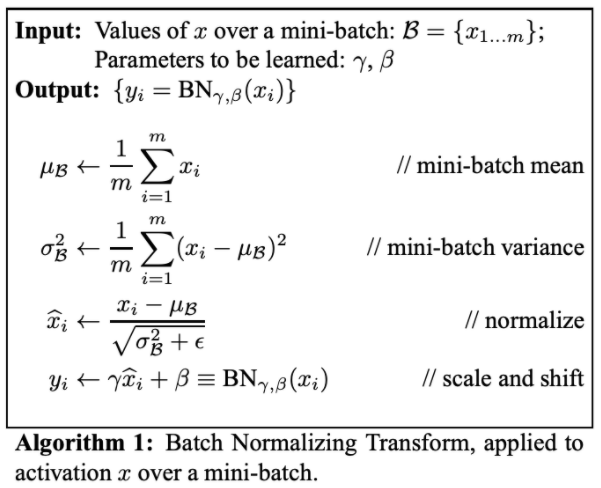 $$y_{i}\leftarrow\gamma\hat{x}_{i}+\beta\equiv BN_{\gamma,\beta}\left(x_{i}\right)$$
