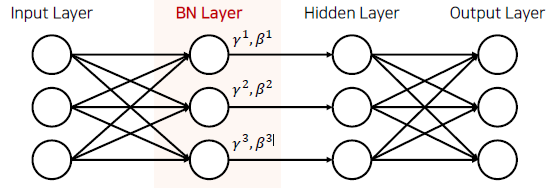 - normalization 된 값들에 대해 Scale factor(gamma)와 Shift factor(beta)를 더하여 학습이 가능한 파라미터를 추가함
