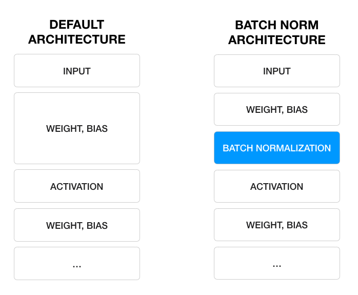 따라서 BN은 학습 가능한 parameters가 존재하는 하나의 레이어 구조가 되며 이 기법이 발표된 이후 기존의 딥러닝 구조에서 Convolution Layer와 Activation Layer 사이에 BN Layer가 들어간 형태로 발전했다. 이 구조로 큰 성능 효과를 높이게 되어 거의 모든 딥러닝 구조에 BN기법이 사용되기 시작했다.